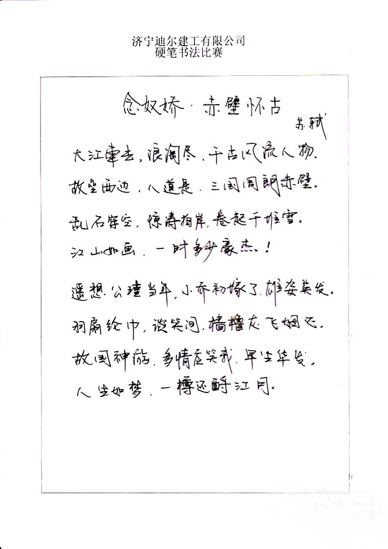 本次硬笔书法比赛成功举行并获得了公司员工的一致好评。