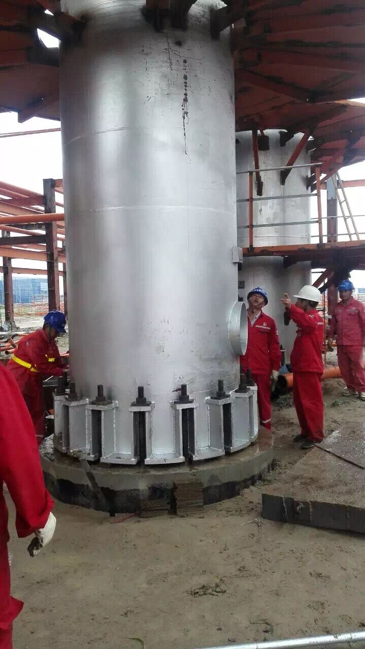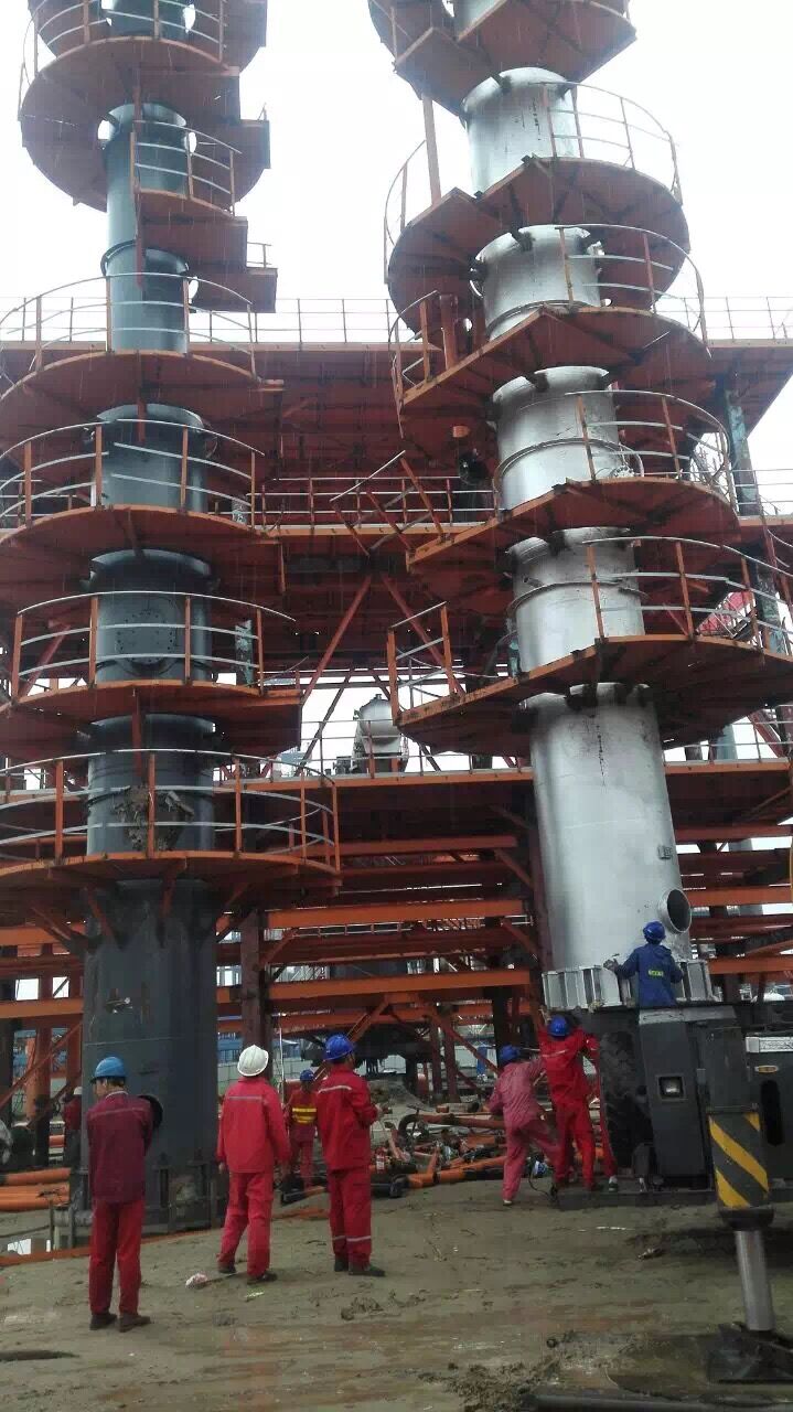 2016年6月23日,在项目部全体技术管理人员的共同努力下,我公司承接的山东寿光鲁清石化有限公司500万吨/年油品升级项目中加氢分馏塔吊装工程,整个吊装准备工作组织到位,方案齐全,安全设施得力,已顺利就位。