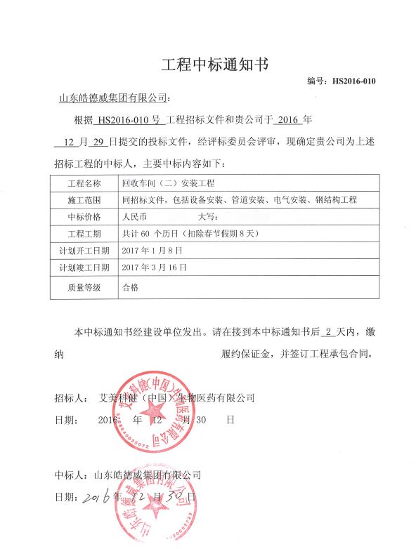 我公司成功中标金乡县王丕街道2016年度高标准农田建设项目施工第五标段